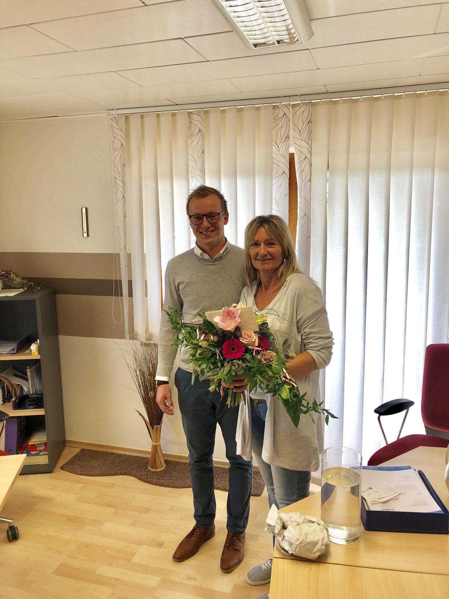 Seit mittlerweile 10 Jahren ist unsere geschätzte Mitarbeiterin und Kollegin Martina Rohr nun fester Bestandteil unseres Unternehmens. Zuständig für den Privatkundenbereich ist sie erste Ansprechpartnerin in Schadensfällen oder Vertragsangelegenheiten und kümmert sich seither immer gewissenhaft um die Anliegen unserer Kundin. Als Dank überreichte ihr Geschäftsführer Michael Riederer am gestrigen Montag einen Blumenstrauß.